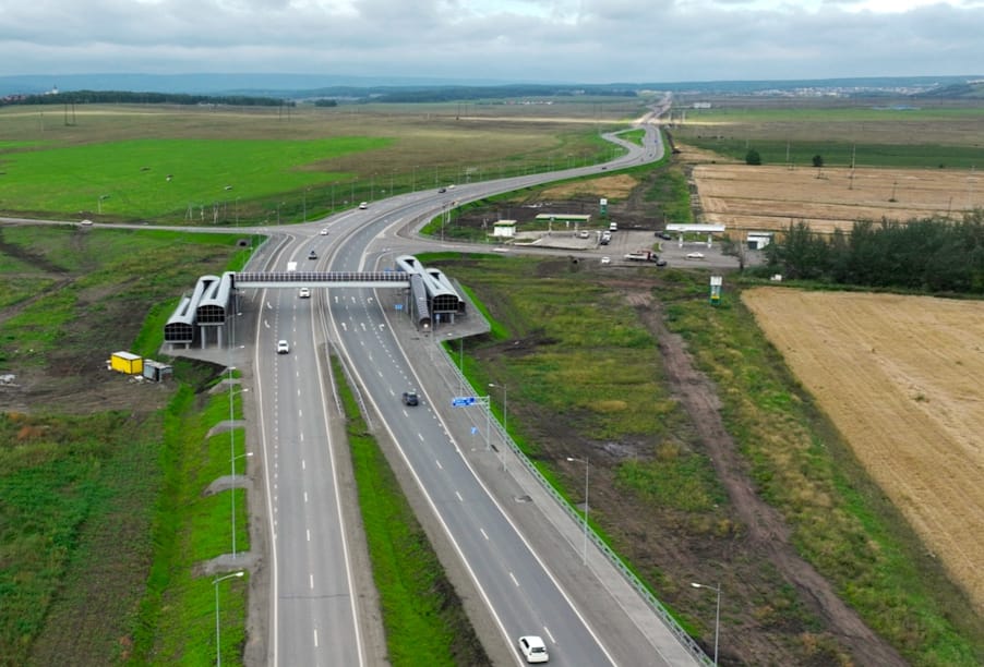 Строительная готовность последнего участка на сегодняшний день составляет 37 %. Специалисты выполняют устройство земполотна и асфальтобетонного покрытия. После чего останутся работы по благоустройству: монтаж освещения, пешеходного и барьерного ограждения, устройство тротуаров, строительство автоматического пункта весогабаритного контроля.